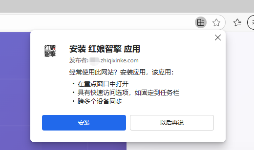 Edge浏览器,在地址栏右侧,点击安装图标